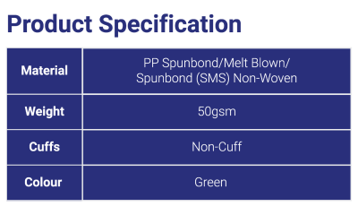 • Made from breathable SMS non-woven.